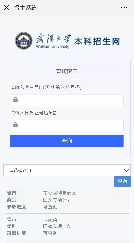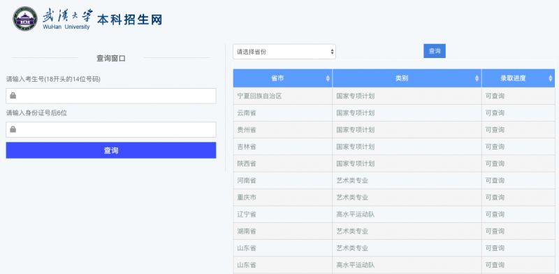 查询页面中有各省份录取进度