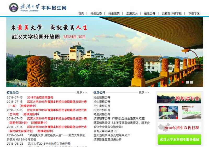 “武汉大学本科招生网”、