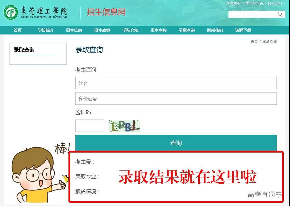 登录http://xsc.dgut.edu.cn/zsw/,或点击下方阅读原文,进入页面后点击左下方“录取查询系统”。
