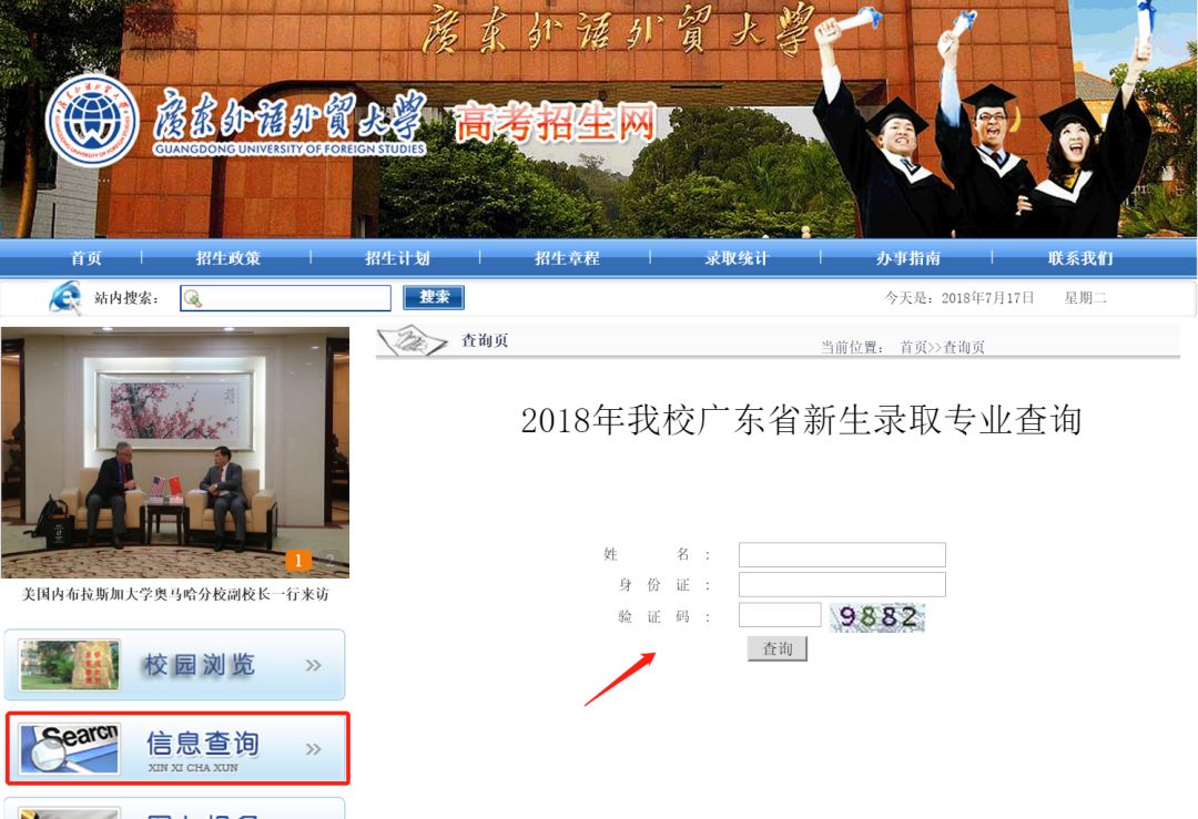 我校今年在广东的录取信息业已上传查询系统,需要查询录取信息的考生可登录我校高考招生网(http://zsb.gdufs.edu.cn)“信息查询”栏查询本人所录取的专业。(点击阅读原文可直接查询)
