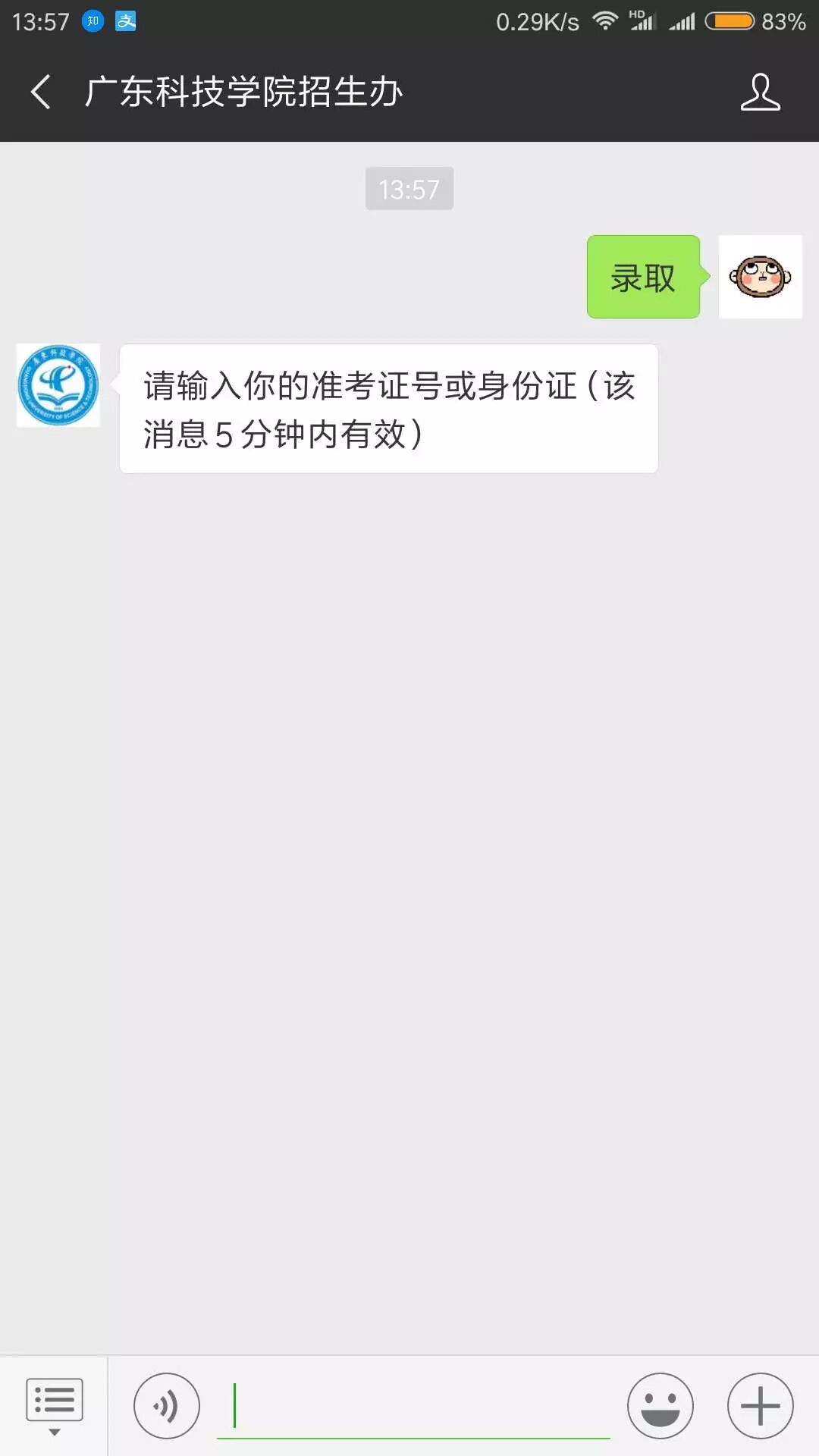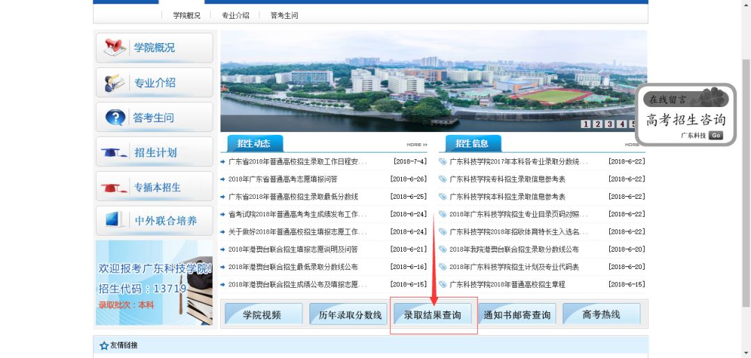 广东科技学院招生办微信公众号,回复“录取”即可查询。