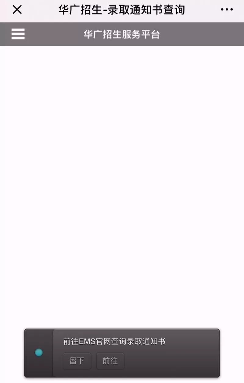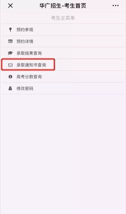 选择“考生查询” 填写自己的“个人资讯” 注册成功之后,登录 点击“录取结果查询” 港澳台考生: 输入港澳台居民来往通行证后六位 大陆考生: 输入身份证号码后六位 那我们应该怎么查询录取通知书呢 公众号下方“录取查询”→“录取通知书查询”→ “前往”