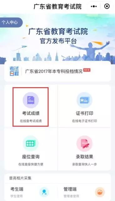 2018年下半年广东省中等职业技术教育专业技能课程考试成绩7月17日17:00公布。17日17:00起,考生可通过微信及网站的方式查询考试成绩。 院官微查询指引 步骤一 考生关注广东省教育考试院官方微信(ID:gdsksy); 步骤二 在主页面底部选择“小程序”栏,点击进入“广东省教育考试院”小程序; 步骤三 点击“考试成绩”; 步骤四 点击“广东省中等职业技术教育专业技能课程考试”,进入成绩查询页面; 步骤五 在查询界面输入姓名及身份证号,即可查询考试成绩。 考试成绩结果页面显示如下: ★特别提醒★:若考生点击“考试成绩”后出现如下界面: 请关闭微信,重新开启再进入院官微小程序操作即可。 网站查询方式 考生可以用报考时所用的用户名及密码登录网上报名网站(http://www.ecogd.edu.cn/jzbm),进入“成绩查询”栏查询成绩。 考生如对本人成绩有疑问,可在7月20日12:00前向当地市、县(区)招生考试部门提出复查分数的书面申请。复查内容为成绩统计合成是否有误、答卷是否漏评,不涉及评分标准的掌握宽严问题。 祝考生取得优异成绩!