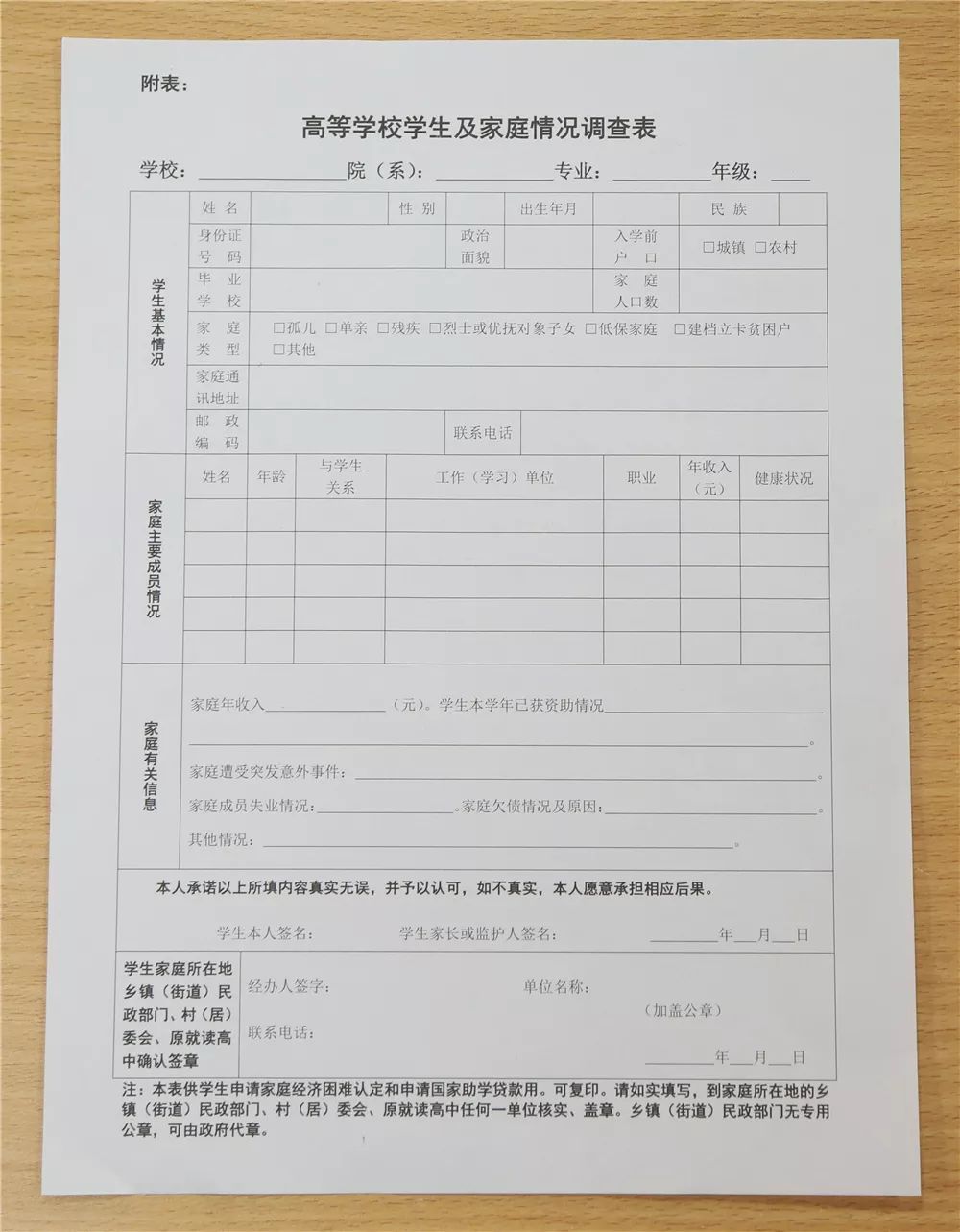 如果需要申请国家助学贷款,请在开学前填写好调查表,并加盖当地有关部门印章,于开学时统一上交。