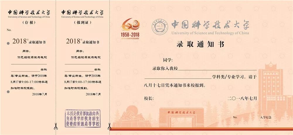 2018 年是中国科大六十周年校庆年,今年的本科录取通知书也推出了校庆特别版!