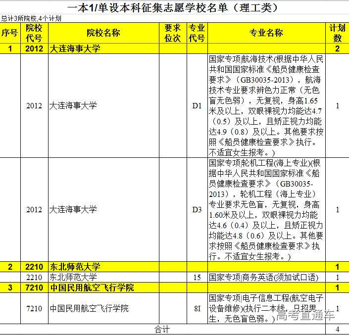 3.报考中国民航飞行学院应注意以下条件:(1)只招男生;(2)无色盲色弱。