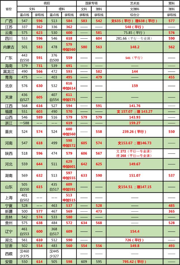 (以下相应招生类型内标红的省份可在录取查询系统内查询录取结果。未标红省份考生可先在省招办志愿系统查询录取状态)