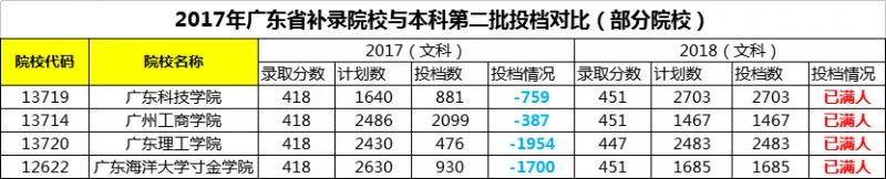 2018年广省新增三所本科院校,两所学校还没有发布招生计划。深圳技术大学(筹)在本科第一次投档的时候就已经招满,还有两所广东工商职业学院升格为广东西江学院,广州科技职业技术学院升格为广州科技应用学院。