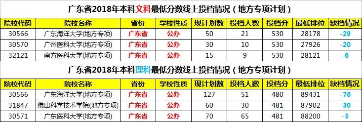 省内部分公办院校,意外爆冷。从缺档的数据省内多所公办(地方专项)计划没有招满。缺档最严重的就是广东海洋大学(地方专项)理科本科二次投档招生计划才:127人,投档结束后还缺76个。(PS:地方专项计划是农村和贫困地区学生上名牌大学更容易的途径,也说明政策宣传不到位,珠三角与粤东,粤西教育水平的差距大。)