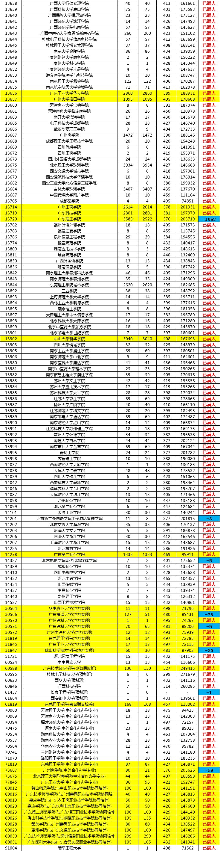 今年本科投档情况火爆,竞争激烈。文科共有533所学校参与录取,没有录满的学校只有9所学校。理科共有640所学校参与录取,没有录满的学校只有19所学校。往年广东省需要补录学校,文科全部满档。(PS:满档学校开心,考试院说人民满意,可是等补录本科同学怎么办?)