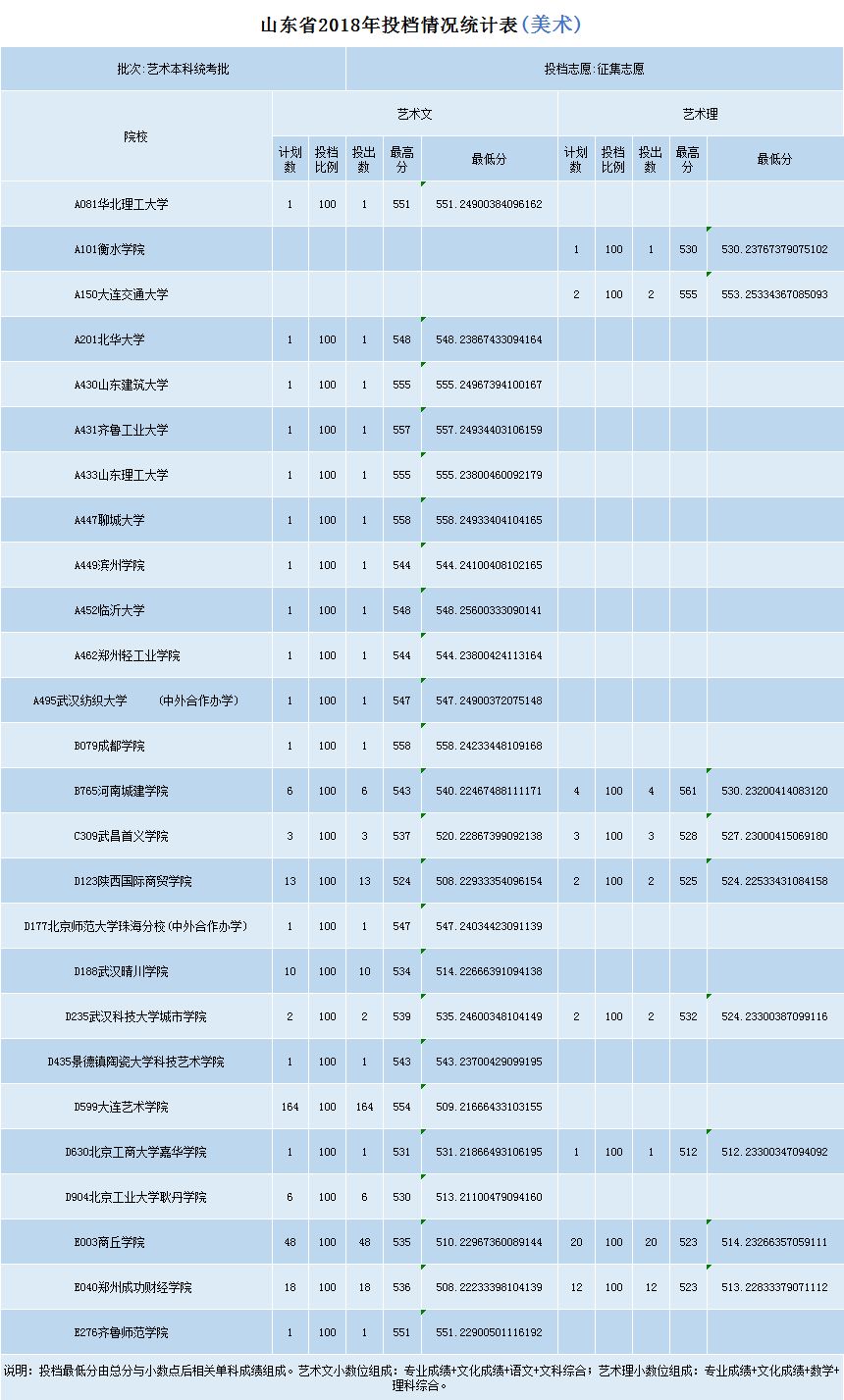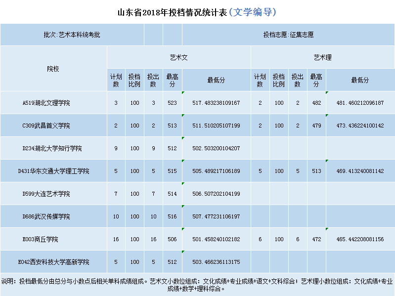 今天下午,山东省教育招生考试院公布山东省2018年美术征集志愿投档情况统计表、山东省2018年体育征集志愿投档情况统计表和山东省2018年文学编导征集志愿投档情况统计表。