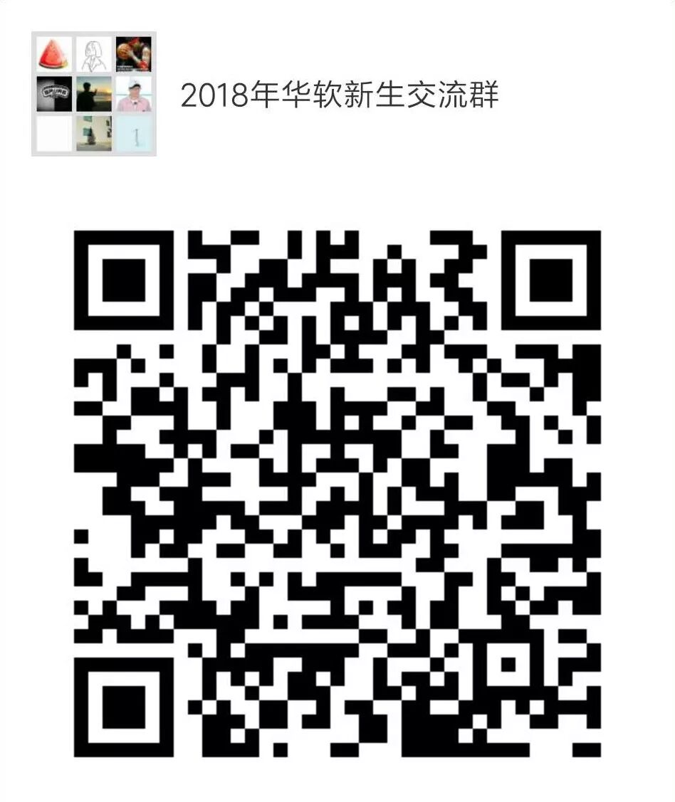 微信群: 《2018年华软新生交流群》 注:因为微信群超过100人无法通过扫二维码加入, 所以想要进入的同学可加以下微信号: lpx839214860、htg403963470、 1670153475、xr2386935354 师兄师姐将带你进群哦~