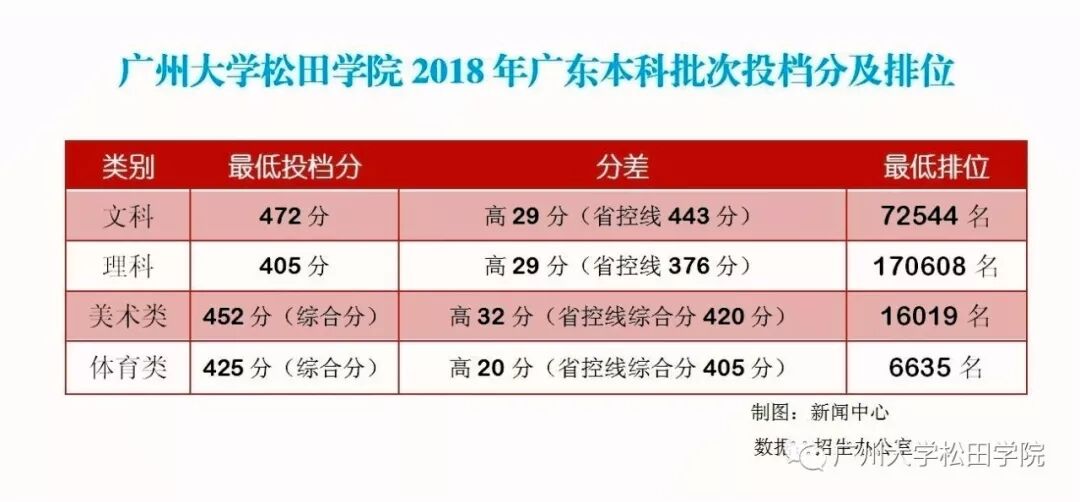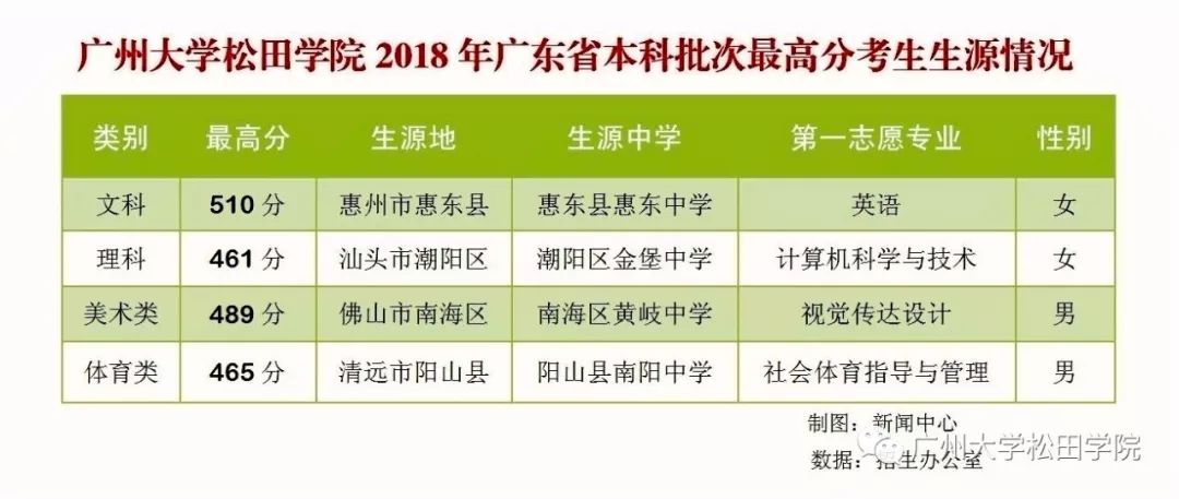 预告 7月19日之后,学院官微(广州大学松田学院)、门户网站(www.sontan.net)将第一时间授权开放录取查询系统,包括录取专业查询。 如果 梳理我院今年在广东本科批次 录取的情况 官微君梳理制作了“两张图” 在这里面, 我们清晰的标注了 各个大类的最低分、最高分 共8个分数值 还有, 今年录取在我院 4个大类的4位“状元” 以及他们来自的城市 来自的高中母校 还有他们的“第一选择”!