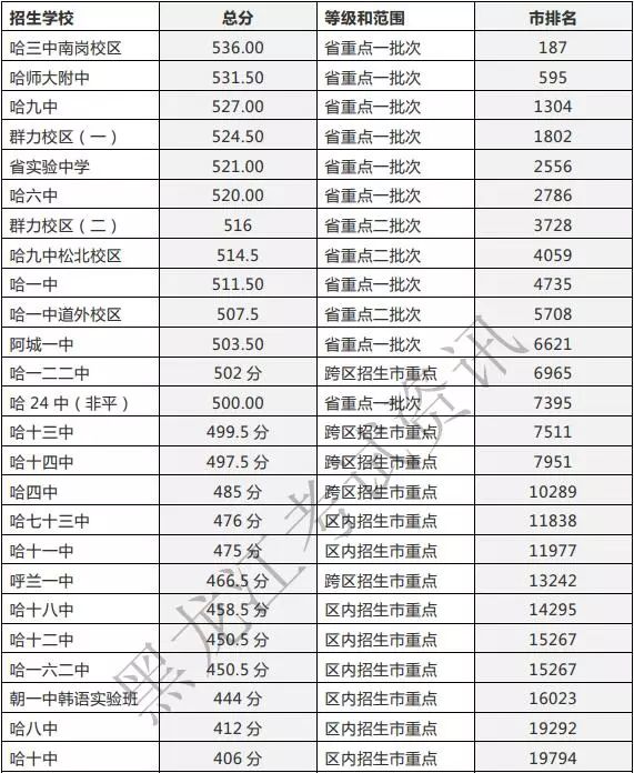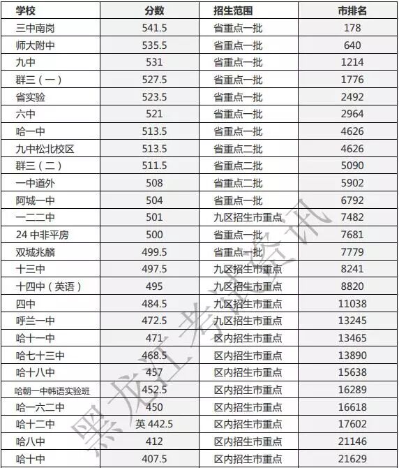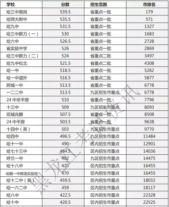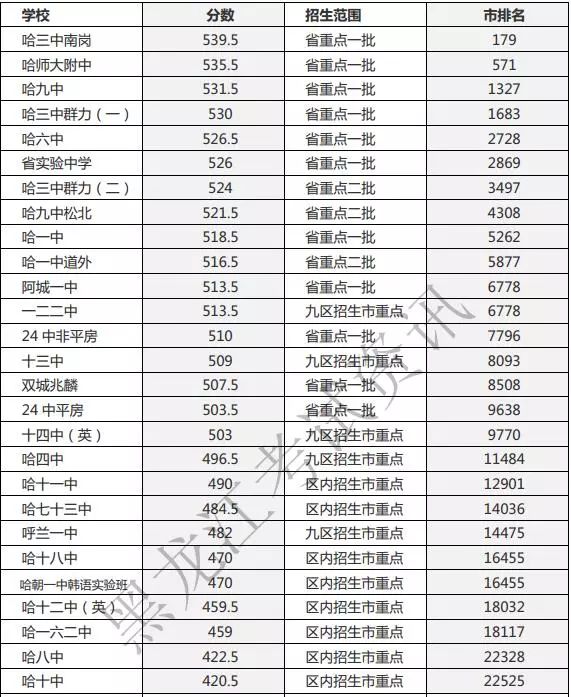 昨日哈尔滨市教育局官网公布了今年哈市省重点高中一批次统招录取分数线。