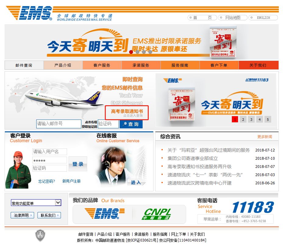 登录EMS官网,点击“高考录取通知书”进入查询系统。输入准考证号:
