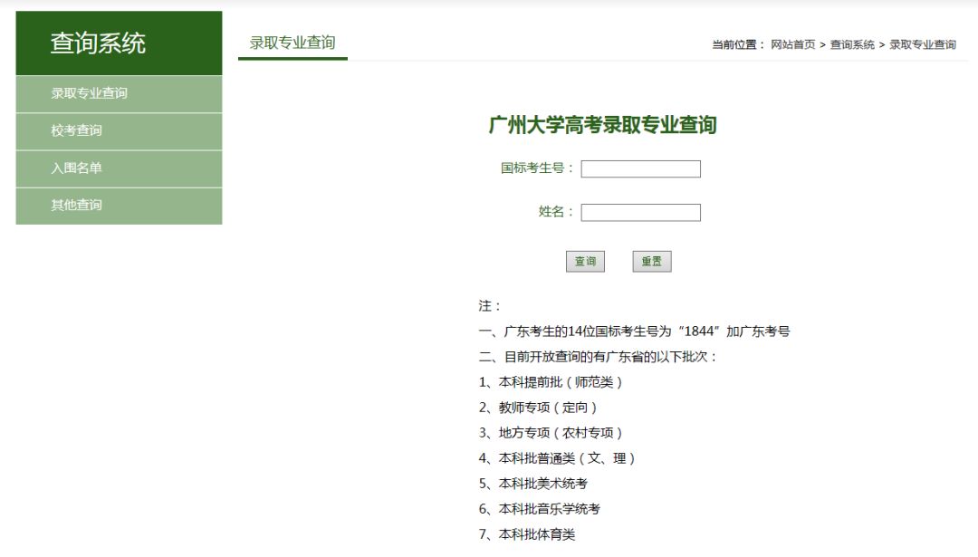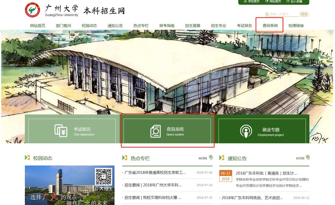 广州大学2018年本科招生专业录取结果查询入口已开放,广东省以下批次考生可以通过以下两种方式登录查询录取结果。