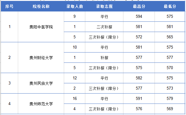 贵州2018年7月19日地方专项计划录取情况(文史类)