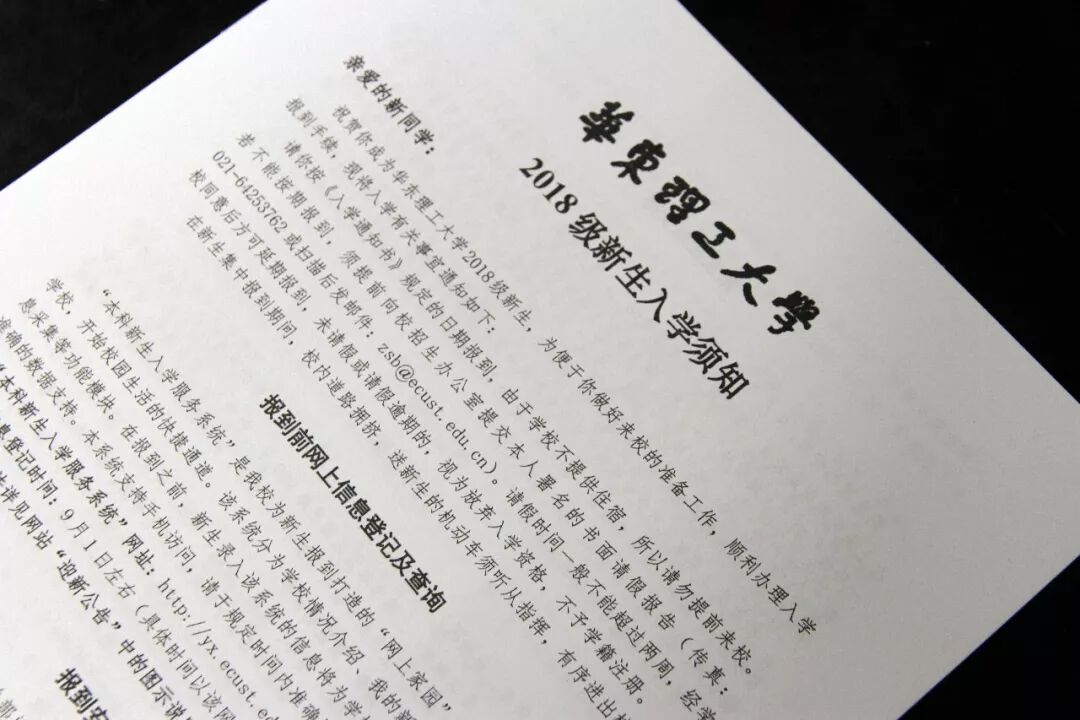 入学须知可是走进华理的“第一步”,所以说,每一位新“华理人”都要认真阅读哦,尤其是注意看里面的报到时间、报到安排等。