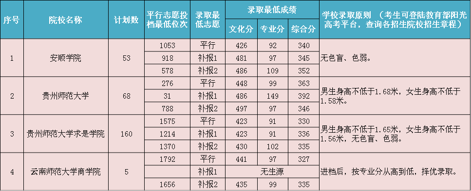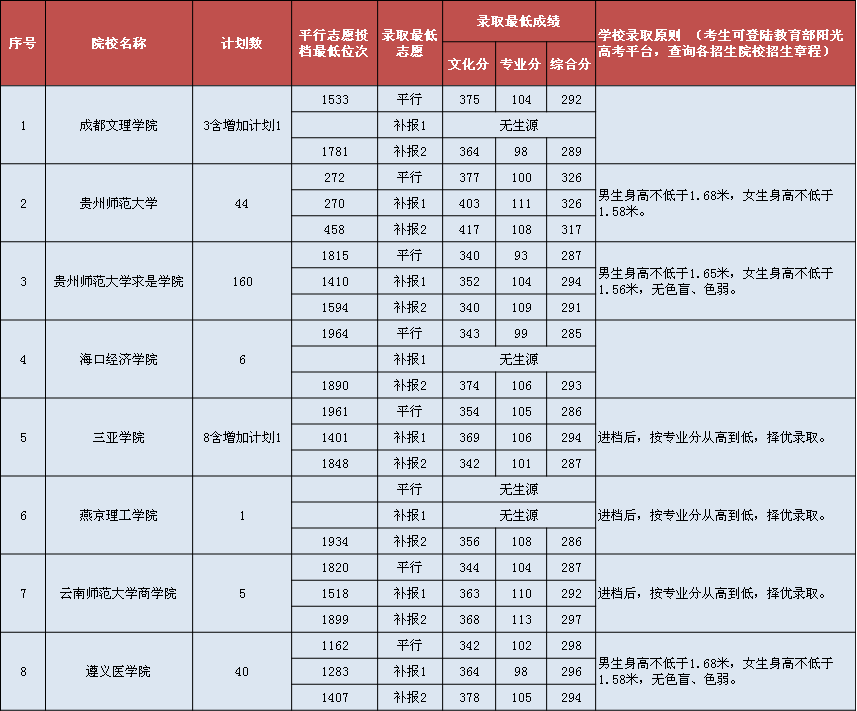 贵州省2018年7月23日高考体育(理工、文史)第二批本科院校录取情况