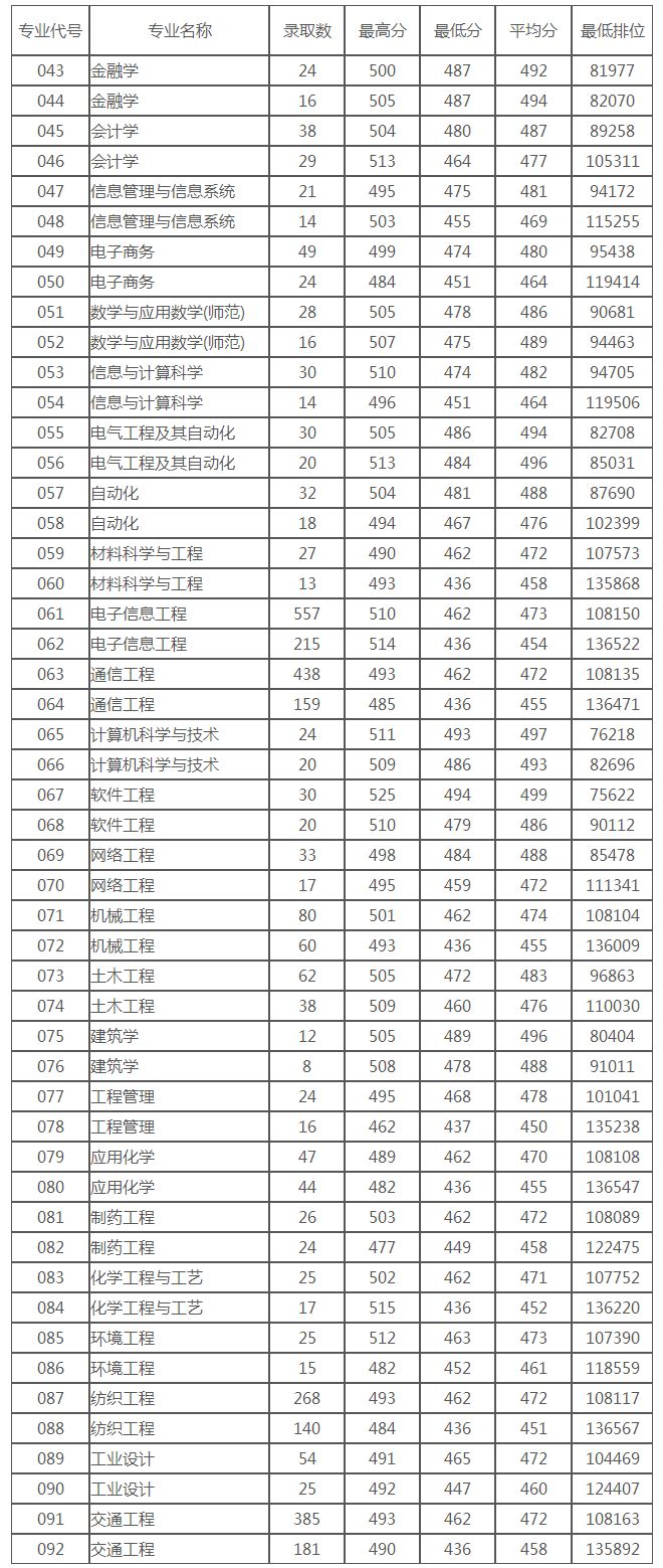 今年五邑大学在广东省的招生势头良好、生源充足,广东省文理科本科最低分数线上投档一次性满额。市外文科投档分531分,超出本科录取最低分数线88分,最高分556分,超出高分优先投档线6分;理科投档分462分,超出本科录取最低分数线86分,最高分525分,超出高分优先投档线25分。市内文科投档分518分,超出本科录取最低分数线75分,最高分556分,超出高分优先投档线6分;理科投档分436分,超出本科录取最低分数线60分,最高分515分,超出高分优先投档线15分。