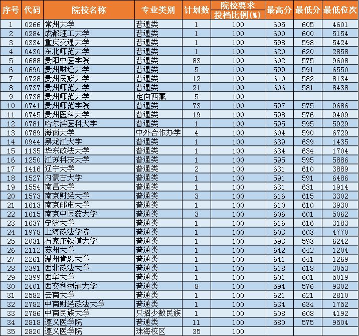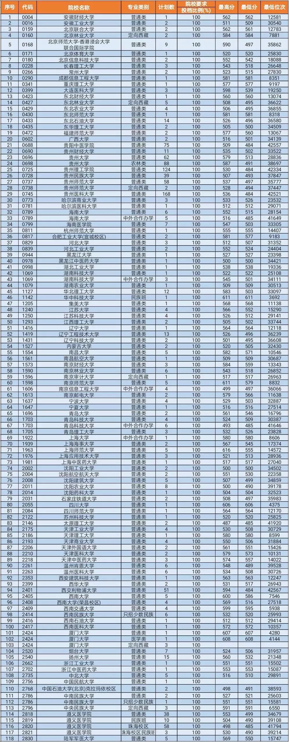 2018年贵州省高考第一批本科院校补报志愿投档情况