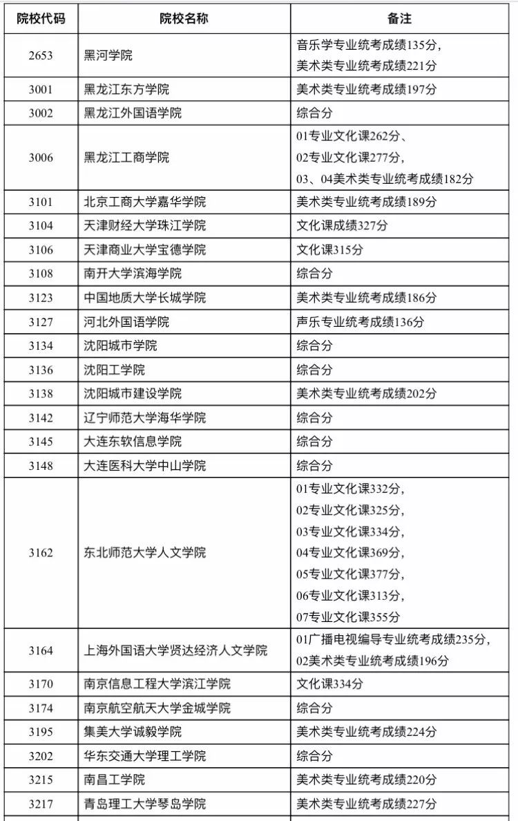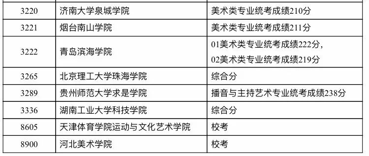 【艺术类分数线】艺术类本科二批院校录取结束名单及分数线(一)