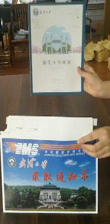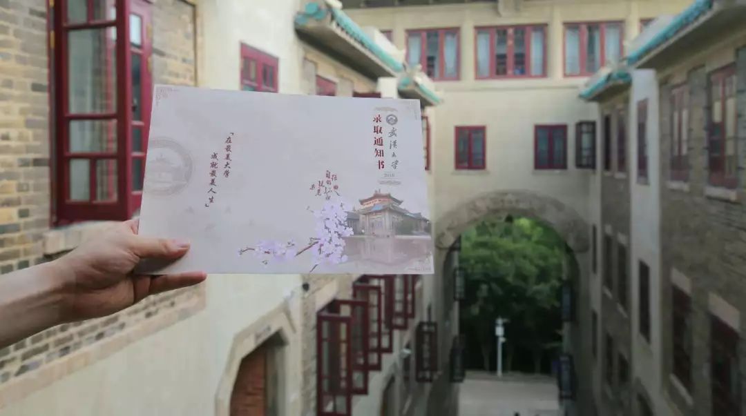 录取通知书的底纹是带有浓郁中国风的水波纹,暗示武大屹立于东湖之滨,同时象征着知识的海洋。