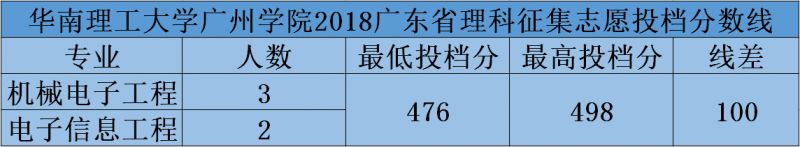 广东省本科征集已正式投档,理科5个计划投满,最低投档分为476分,高出省控线100分,其中机械电子工程3人,电子信息工程2人。