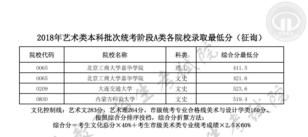 艺术类本科批次统考阶段A类(征询)