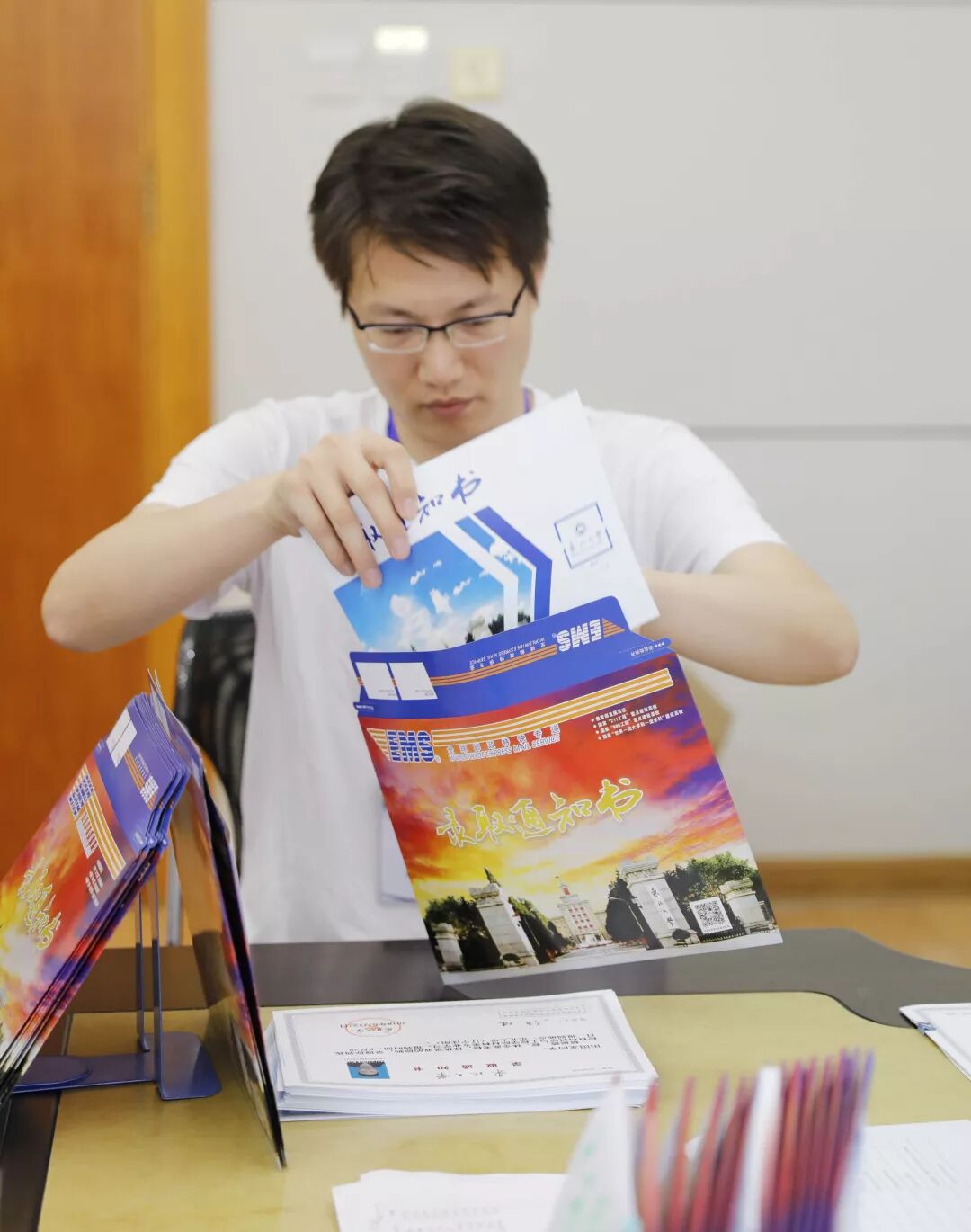 🔺经过整理后,盖好章的通知书接下来也将与其他材料一起装入信封 (ps:看起来是不是很过瘾)