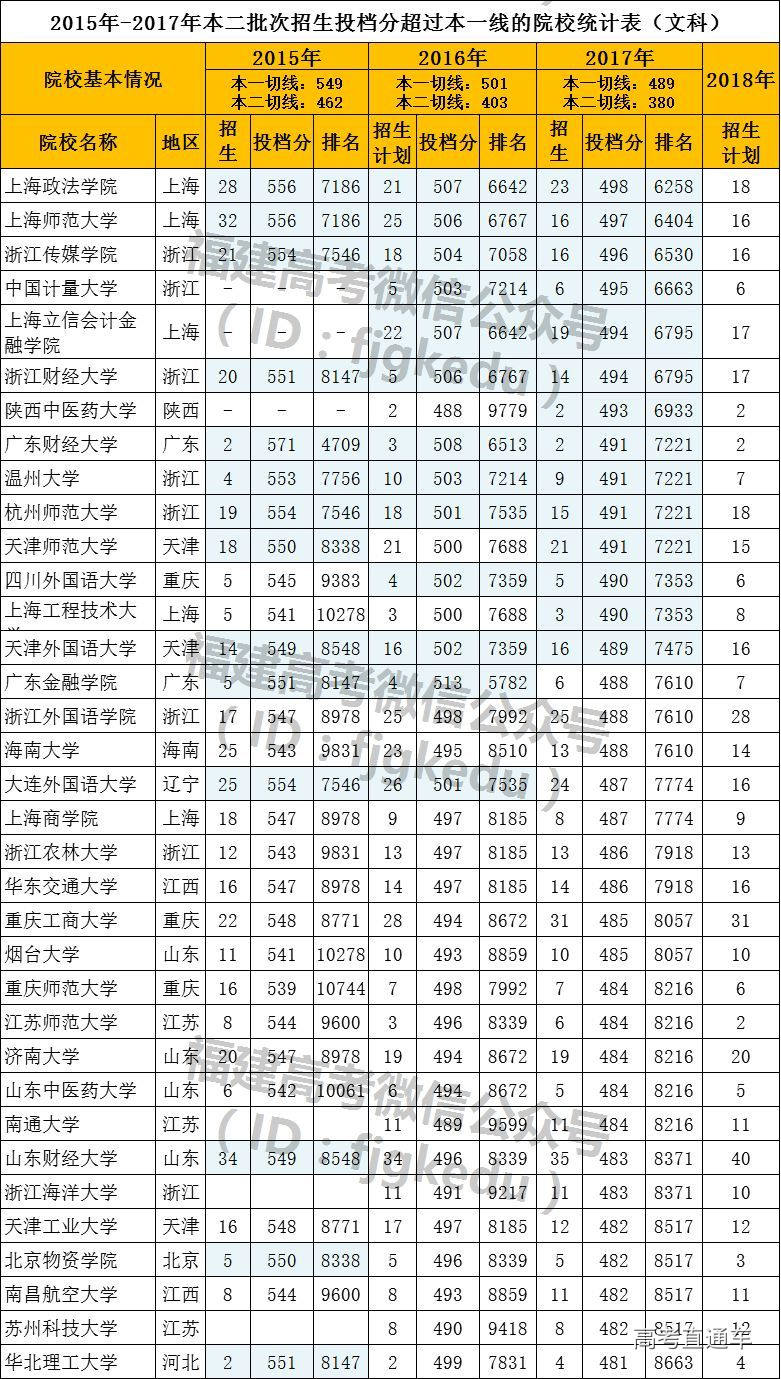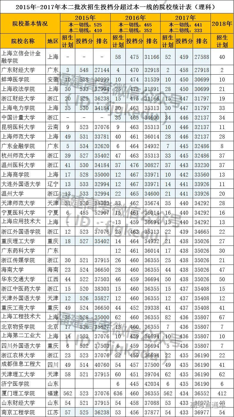 除了表格中标蓝的部分,其实很多院校虽然投档分没过本一线,其实它的大部分专业的录取分数都在本一线上,也值得关注。