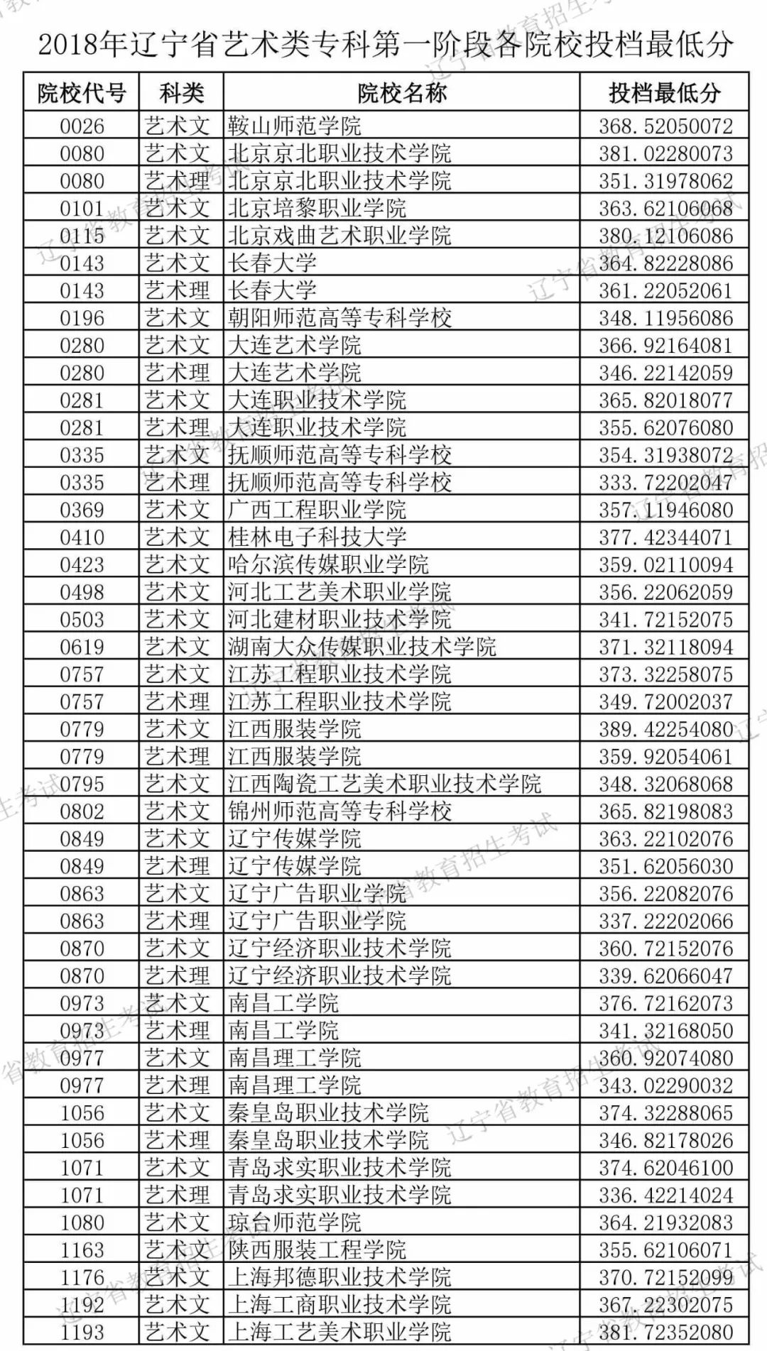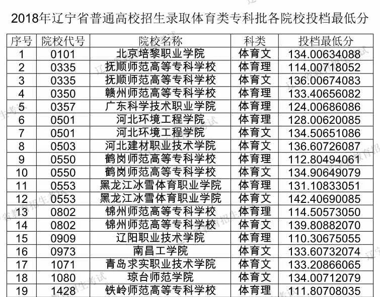 昨天,辽宁省又爆出体育类专科批投档最低分和艺术类专科第一阶段投档最低分,内容如下!