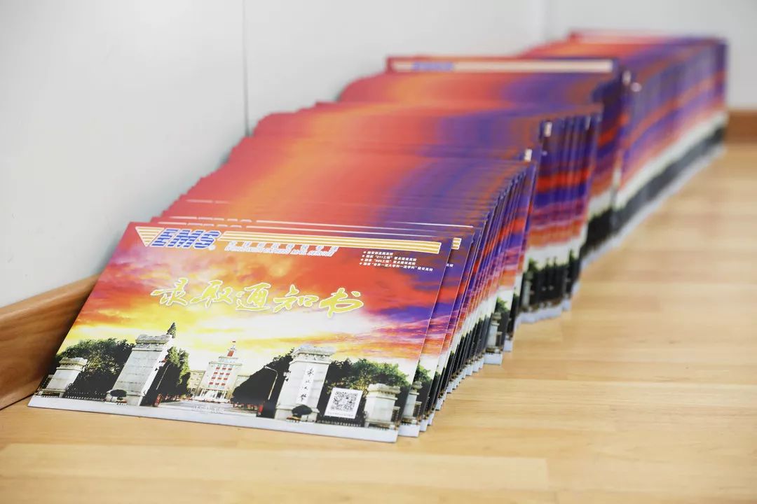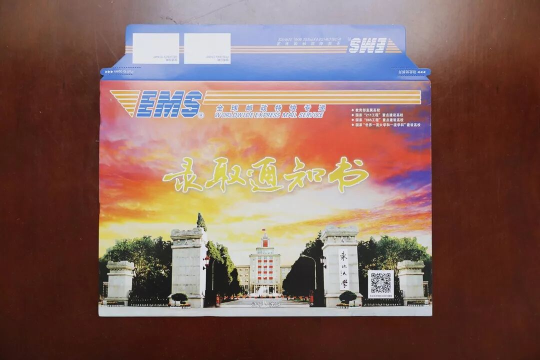 我校2018年录取通知书通过中国邮政EMS分批陆续寄出,寄出后考生可通过录取结果查询页面查询到本人录取通知书邮寄EMS单号,跟踪邮寄状态。录取通知书的邮寄地址为考生高考报名时所留的寄投地址或中学,如8月15日后尚未收到录取通知书,请拨打东北大学招生办电话(024-83687392)咨询。如考生对录取结果存在异议,可拨打招生录取监督举报电话(024-83687318)申述。 东北大学招生办公室 来,我们先睹为快! 录取通知书正面 录取通知书背面 材料袋成分 录取通知书材料袋中除了通知书大家比较关注之外,袋内材料还包括:新生入学须知、学生证一卡通及使用指南、银行卡、资助政策简介、家庭情况调查表、大学新生应征入伍宣传单。 录取通知书 生产流程 今天小编带着大家参观一下 录取通知书的生产流程 看看你们的通知书都经历了什么 设计 印刷 印刷 🔺首先设计并制作最重要的录取通知书 盖章 盖章 盖章 🔺印刷好的通知书将会统一进行盖章,加盖东北大学印章和校长印章 紧张忙碌 整理 整理通知书 🔺经过整理后,盖好章的通知书接下来也将与其他材料一起装入信封 (ps:看起来是不是很过瘾) 打印邮寄单 贴邮寄单 🔺首先邮局的工作人员将邮寄快递单打印并贴在信封背面 读取名单 核对信封 🔺随后要读取录取名单,找到对应的信封 装入录取通知书 🔺再将精心熬制好的录取通知书下入材料袋中 装材料 装入卡 🔺将校园一卡通(学生证)、银行卡放入材料袋中翻炒 入学须知等 🔺随后下入新生入学须知、调查表、大学新生应征入伍宣传单、资助简介等材料 双重核对 双重核对 🔺前期材料装配完成后,进行两轮严格的材料核对 封装 🔺确认准确无误后,将材料袋进行封装 成品 🔺这才是通知书的最终完成版 整装待发 出发咯! 邮局车辆准备完毕 随时准备出发~~ 工作人员正玩命加班中 只为即将来到东大的你能早早感受到 那份期待已久的喜悦 与你相逢的九月 我们在东大 一起描绘青春的模样 东北大学,梦想开始的地方