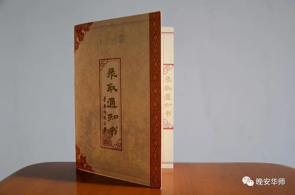 华南师范大学历史悠久,始建于1933年,距今已有85周年。在这漫长的岁月里,学校形成了独特而悠久的文化传统。设计团队一改先前现代化的通知书形式,采用了具有古典气息的古书形式,将学校的悠久历史和古色古香的文化传统体现在通知书中。