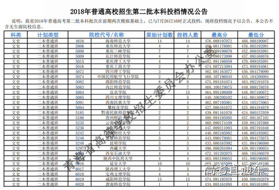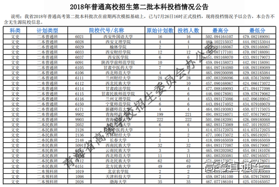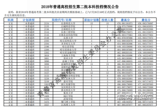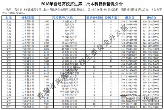 2018年青海省普通高校招生第二批本科投档最高分及最低分已公布,详见下表: