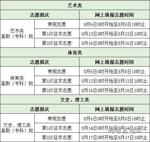 文史、理工类高职(专科)批设常规志愿和2次征求志愿。