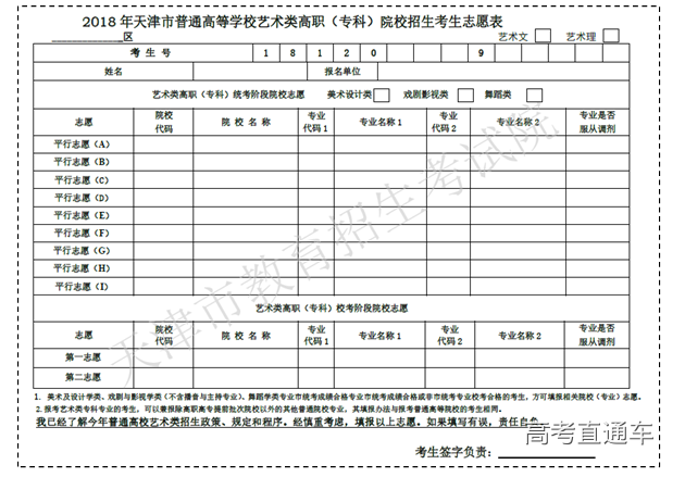 艺术类高职批校考阶段实行顺序志愿投档模式,设置2个院校志愿,每个院校志愿栏中设有2个专业志愿和1个服从调剂专业志愿。