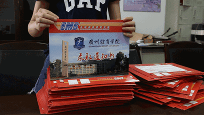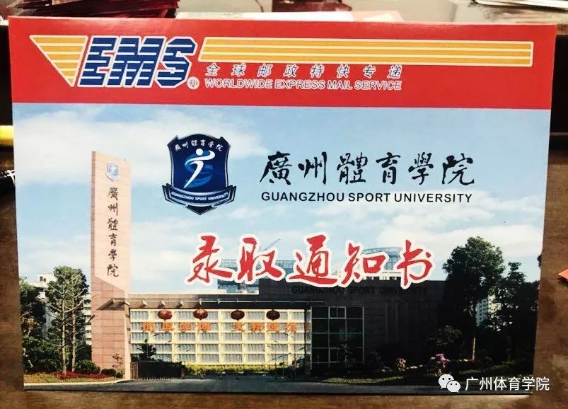 学院的通知书贯以简洁大方、一目明了的呈现方式。EMS快件的封面采用了广州体育学院的正门(即南门)照片,以后的大学生活中,大家将高频率出入这个门。