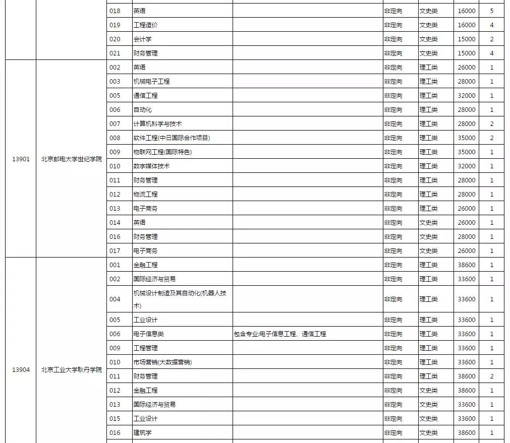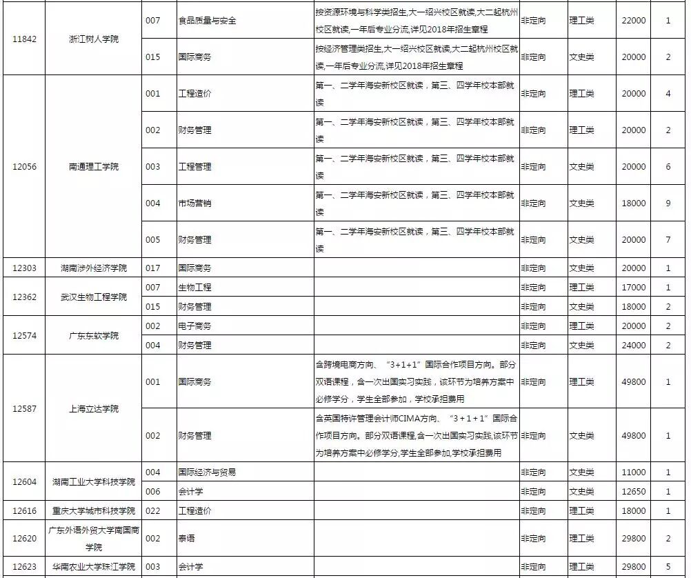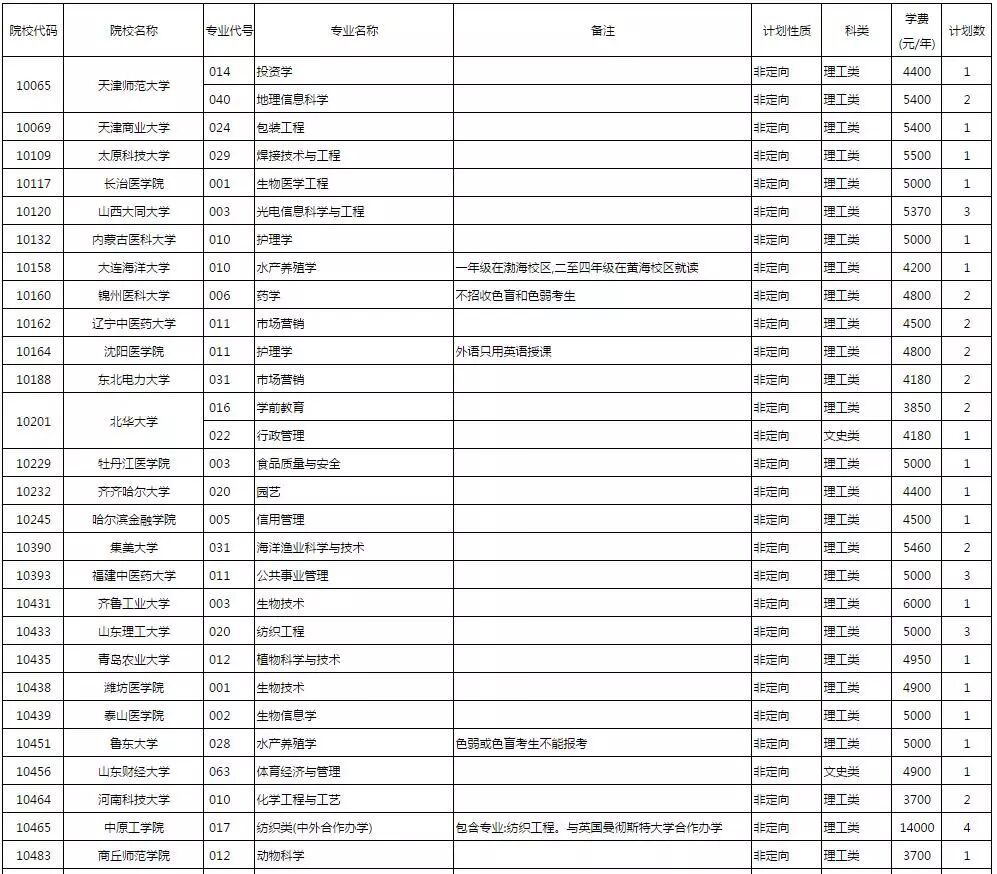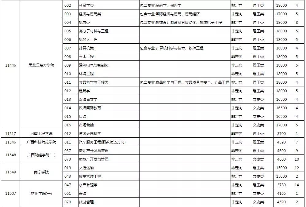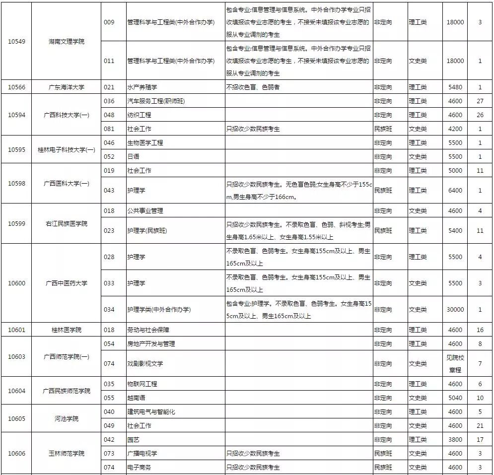 广西2018年普通高校招生本科第二批第二次征集计划信息表