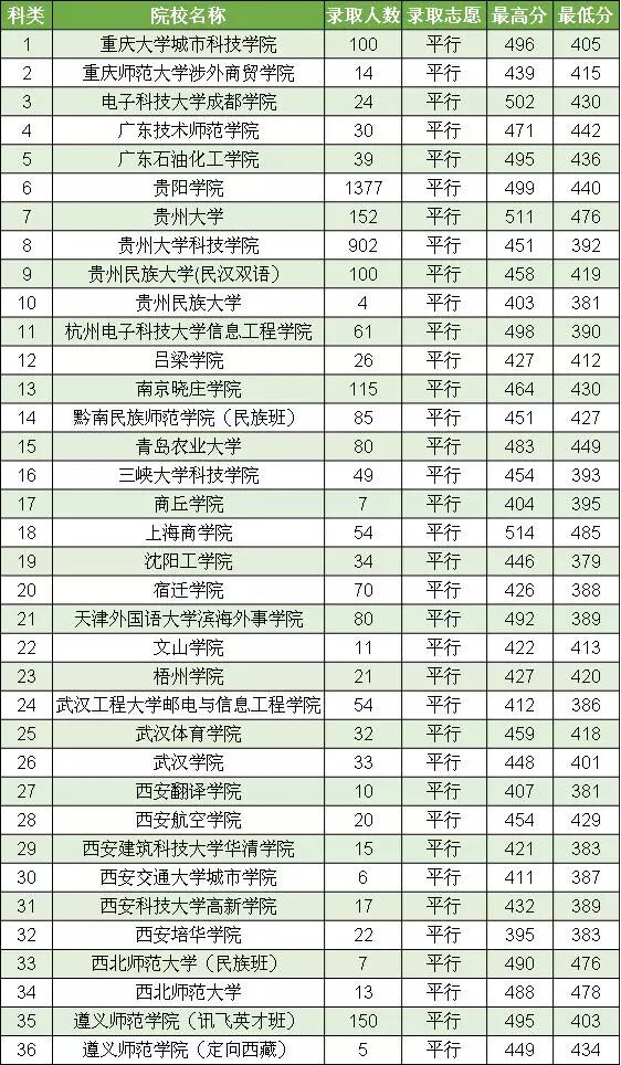 贵州省2018年高考7月28日第二批本科院校录取情况