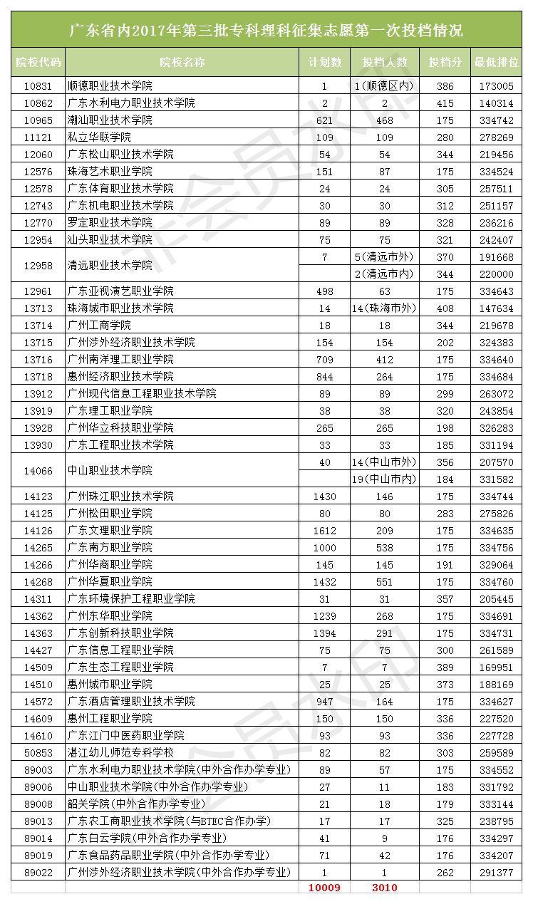 如果投档人数>计划数,那么说明这间院校可以完成招生计划。像深职、番职、广轻工这些热门院校,每年都有很多学生争抢投档,投档人数爆棚。这些院校通常都会在第一次投档的时候就招满了人,进行补录的可能性接近于0。