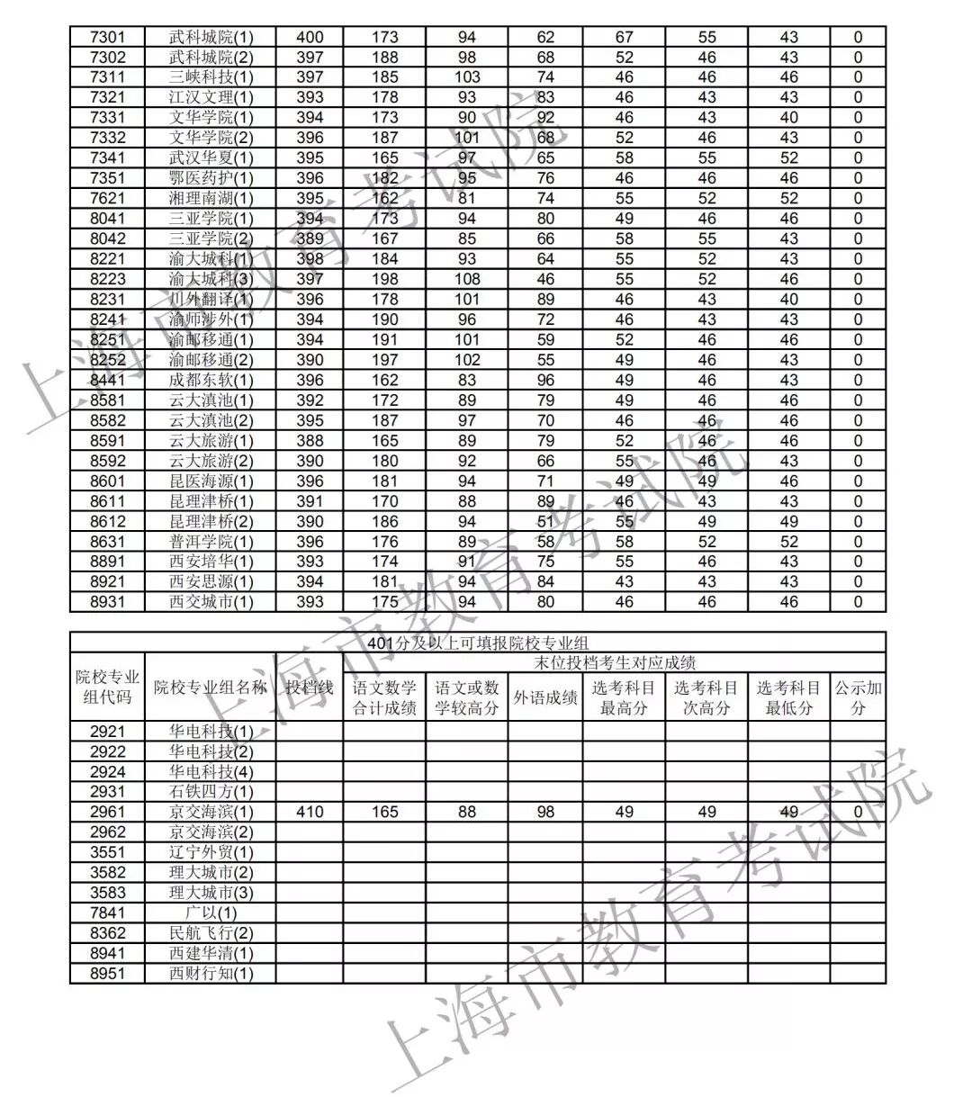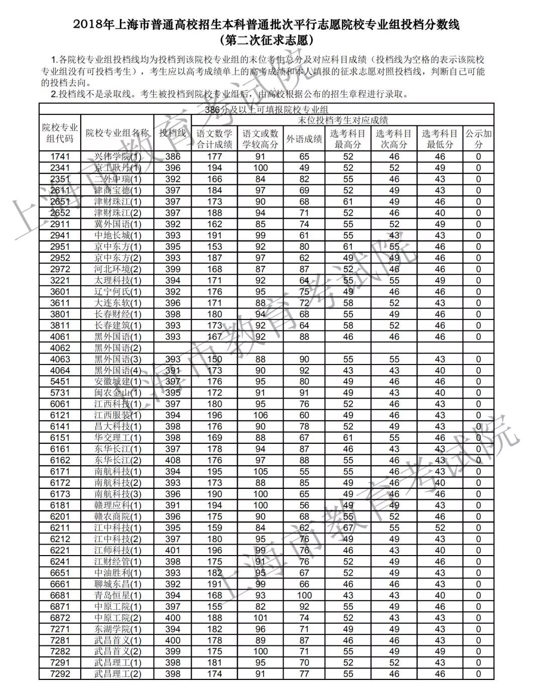 沪本科普通批第二次征求志愿投档分数线公布!详情如下: