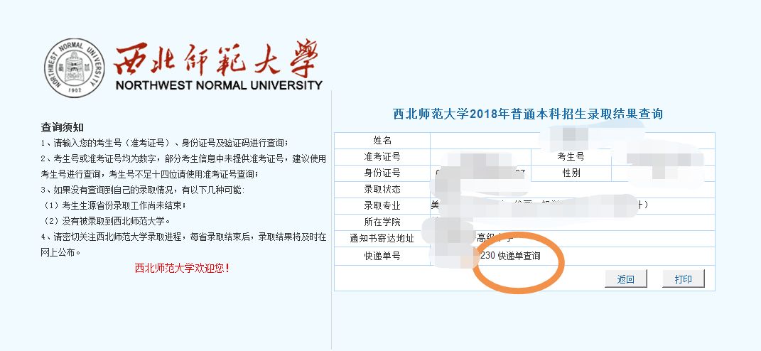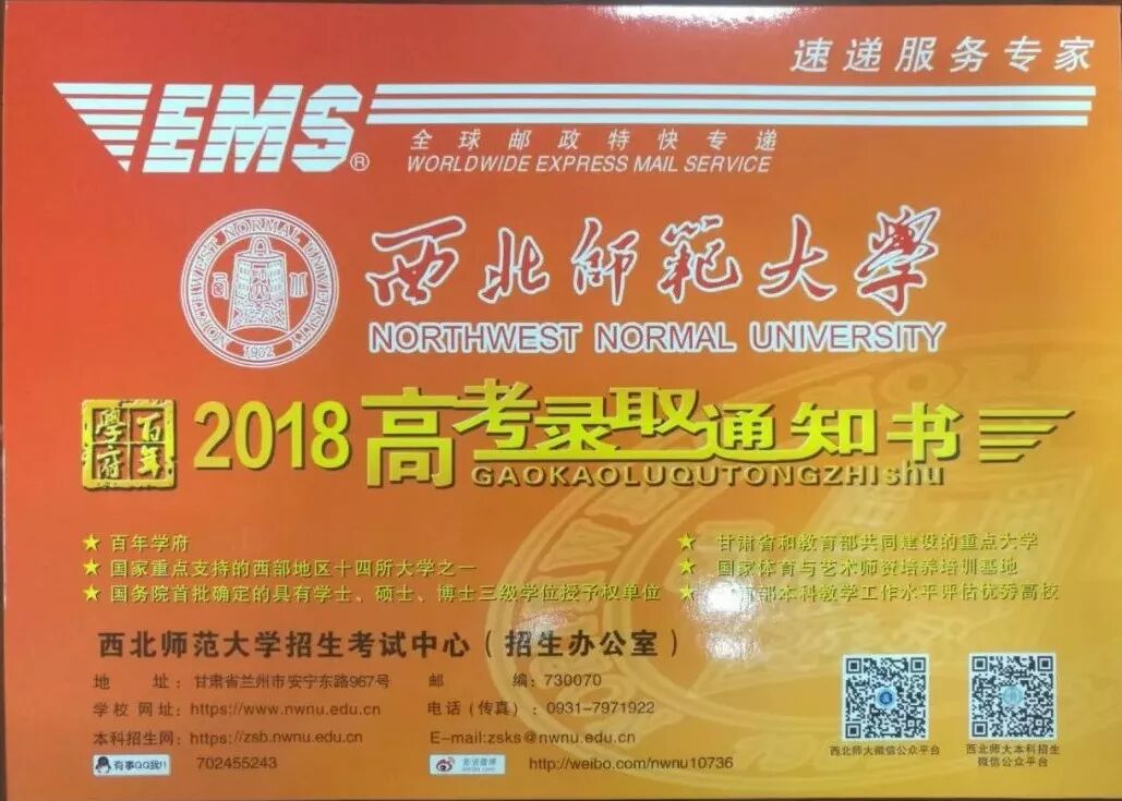 以上批次的通知书于7月25日已寄出。北京普通文理,广东普通文理,海南普通文理,辽宁普通文理,江苏普通文理,上海普通文理, 河北一批,四川体育及艺术,河南一批 ,甘肃I段于7月28日上午发出,已在西北师范大学本科招生网考生查询通道提供快递单号查询。