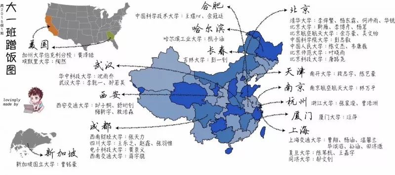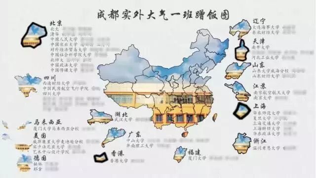 现在,就将整理来的各校“蹭饭地图”做一个汇总,快来看看都有哪些牛校牛班以及~牛娃吧!