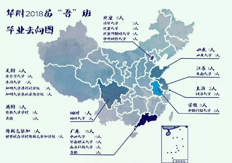 2018高考本科已经录取结束了,那么各个学校的学霸都考去了什么大学?很多牛蛙都会把绘制自己班的大学蹭饭地图(高考毕业去向图),同时这也是各位家长比较关注的一个数据。