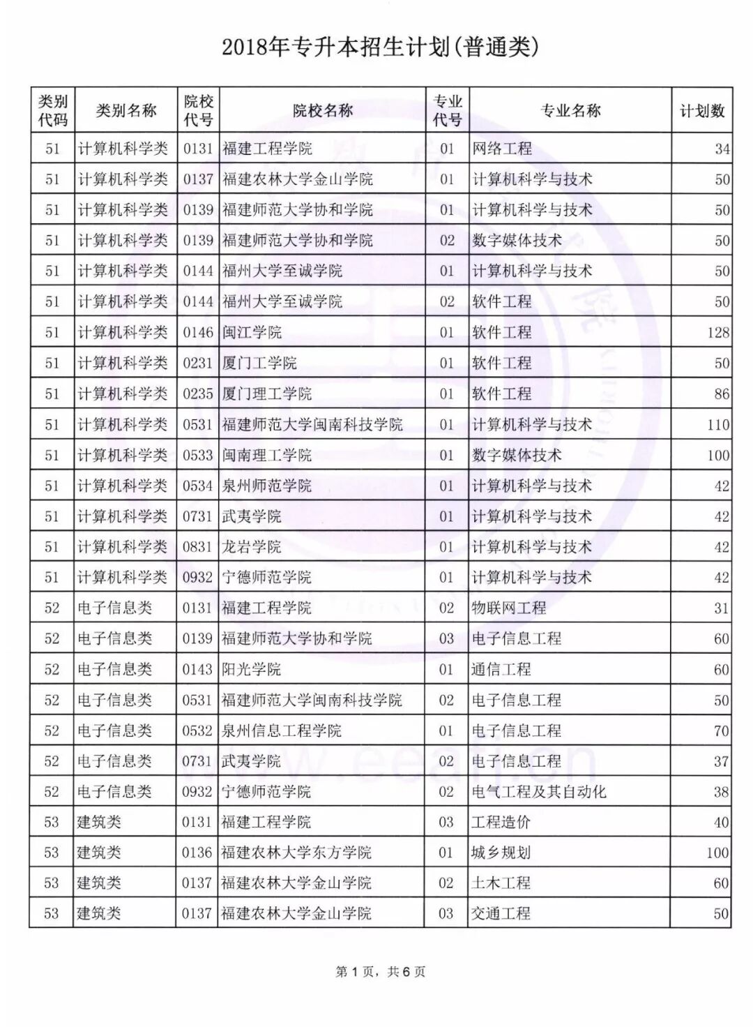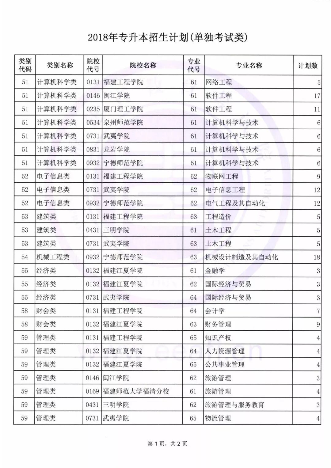 (1) 普通类专升本招生计划下载