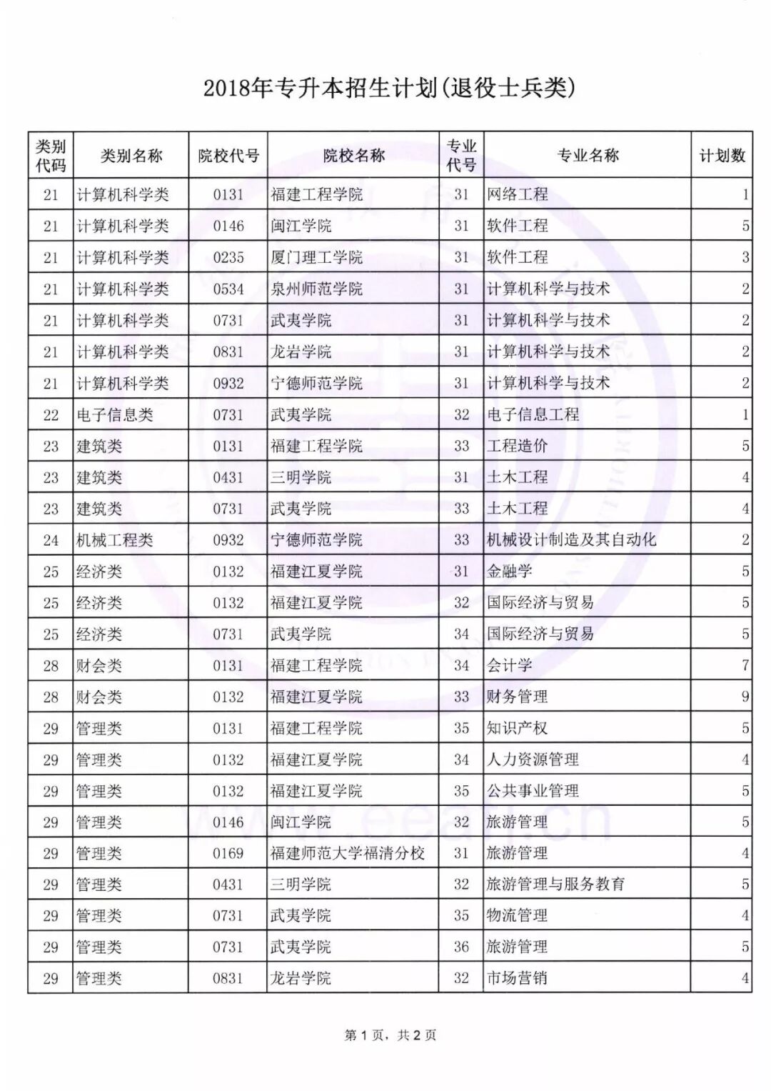 (2) 退役士兵专升本招生计划下载