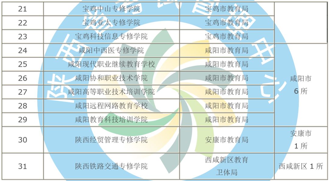 目前,陕西的民办高校分为三类,一类是民办普通高校,实施高等学历教育(研究生、本科、专科);二类是独立学院,实施高等学历教育(本科、专科);三类是民办非学历高等教育机构,实施非学历教育(高等教育自学考试助学、全日制高等教育培训以及函授、业余、短期培训等),不能实施高等学历教育。