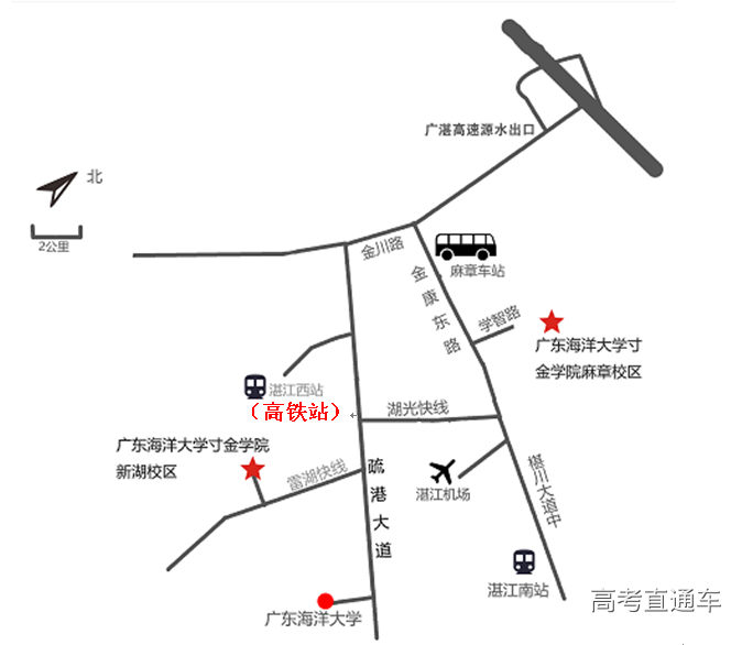 附:湛江市区抵达广东海洋大学寸金学院各校区交通示意图