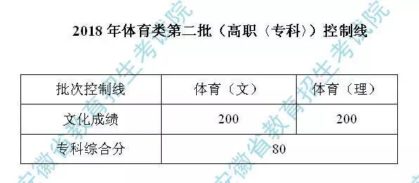 安徽2018年体育类第二批(高职〈专科〉)控制线